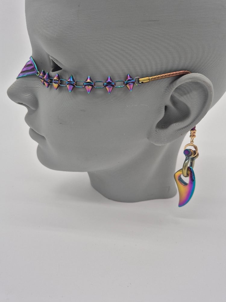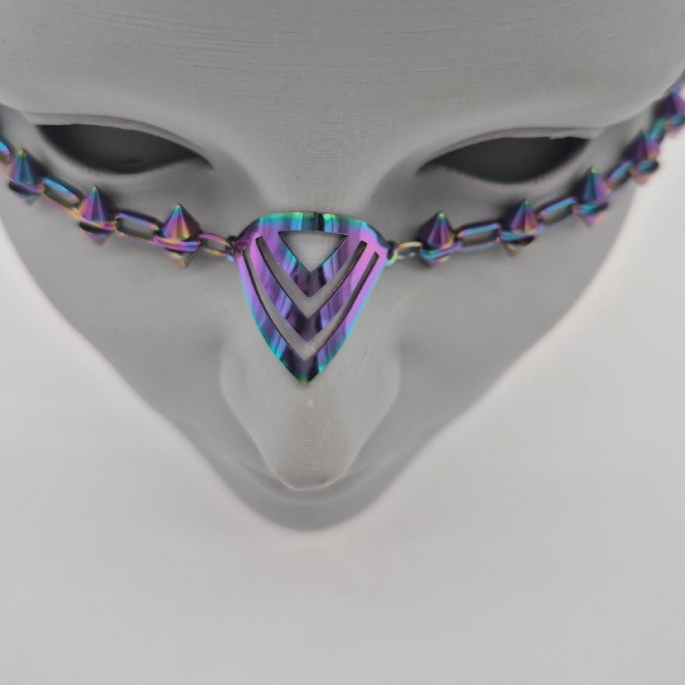 Fae vibes but make it lethal. This high-polish rainbow titanium facechain is giving full celestial boss energy — spiked out and radiant in every light. Designed to enchant and intimidate.